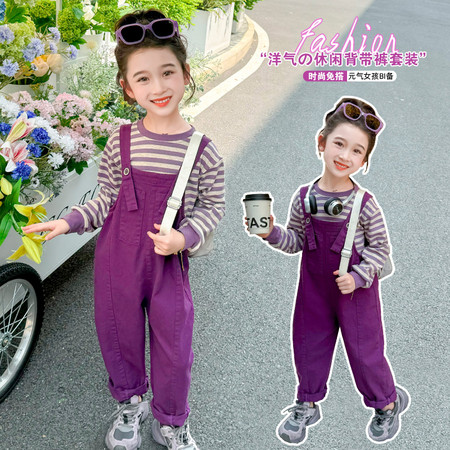 诺*咪下载“Q2404紫色条纹背带裤套装”图片包