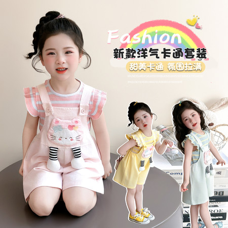 1*5下载视频“X2602猫咪彩条背带套装”
