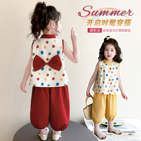 1*5下载视频“X2601圆点蝴蝶结灯笼裤套装”